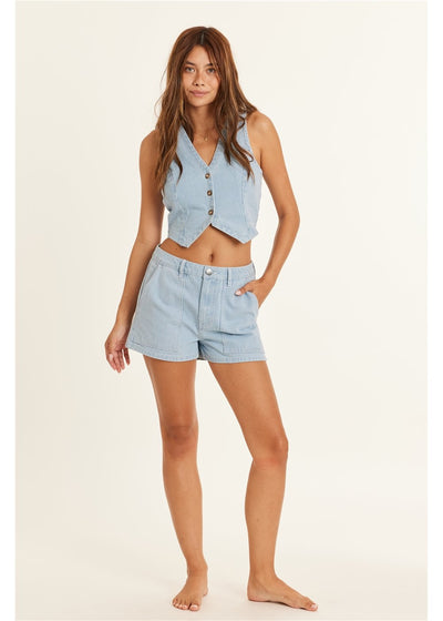 Experience the comfort and versatility of our Nani Fleece Shorts. These stylish shorts feature a playful dolphin hem design, contrast binding, and a convenient encased elastic waistband. Plus, you can keep your essentials close by with the on seam pockets. 60% Cotton 40% Recycled Polyester. Modeled in size Small.