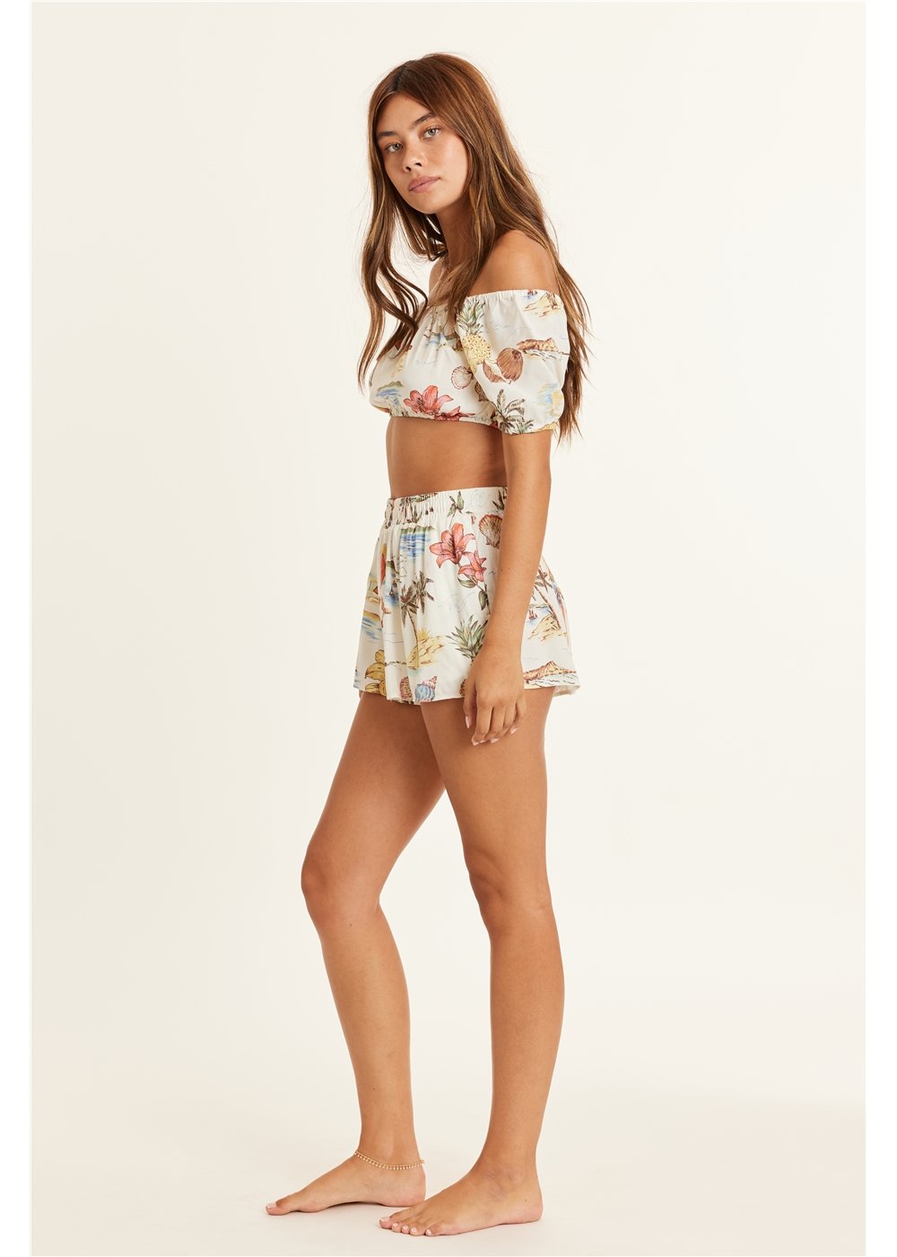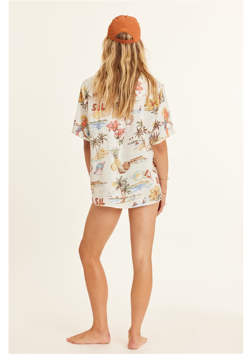 A playful top with button front, long sleeves, and made of soft cotton gauze, perfect for throwing over your kini after a long beach day.