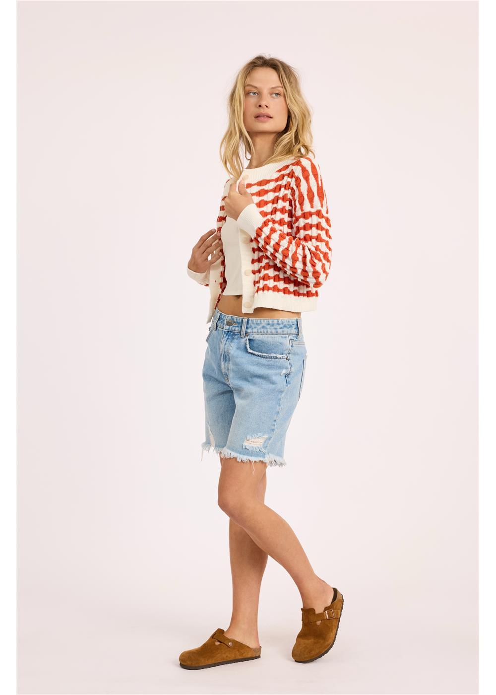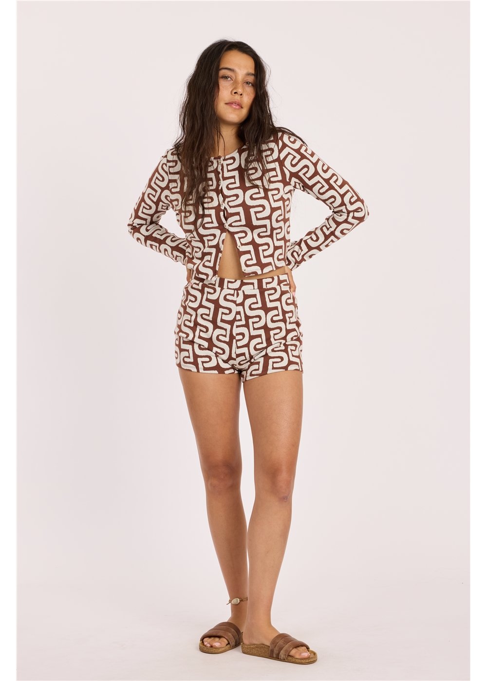 Embrace your inner sunshine with the In My Sol Ls Knit—a fitted and cropped long-sleeve cardigan that's ready to elevate any outfit. This knit jacquard beauty features a button-front design that gives you complete styling flexibility, whether you want it fully buttoned for a polished layer or left open for an effortless drape. The cropped silhouette hits right at the waist, creating a flattering shape that works beautifully over everything from fitted tees to flowing dresses. The textured jacquard knit adds visual interest and dimension, making this cardigan a statement piece that stands on its own. Perfect for layering on cool evenings, adding warmth without bulk, or creating that just-right transitional look between seasons. Playful, versatile, and undeniably stylish, the In My Sol Ls Knit is the kind of piece that instantly elevates your everyday wardrobe and makes you feel like your best self.